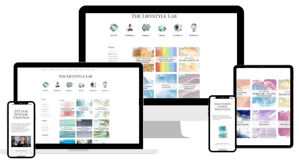 A searchable mind-body healing library packed with nervous system tools to help you shift stress, release stuck emotions, and support healing in the moment. With options like tapping, meditation, hypnosis, breathwork, journaling, soundbaths, and somatic tools, you can filter by your symptoms, mood, time, and modality—and instantly get what your body needs.