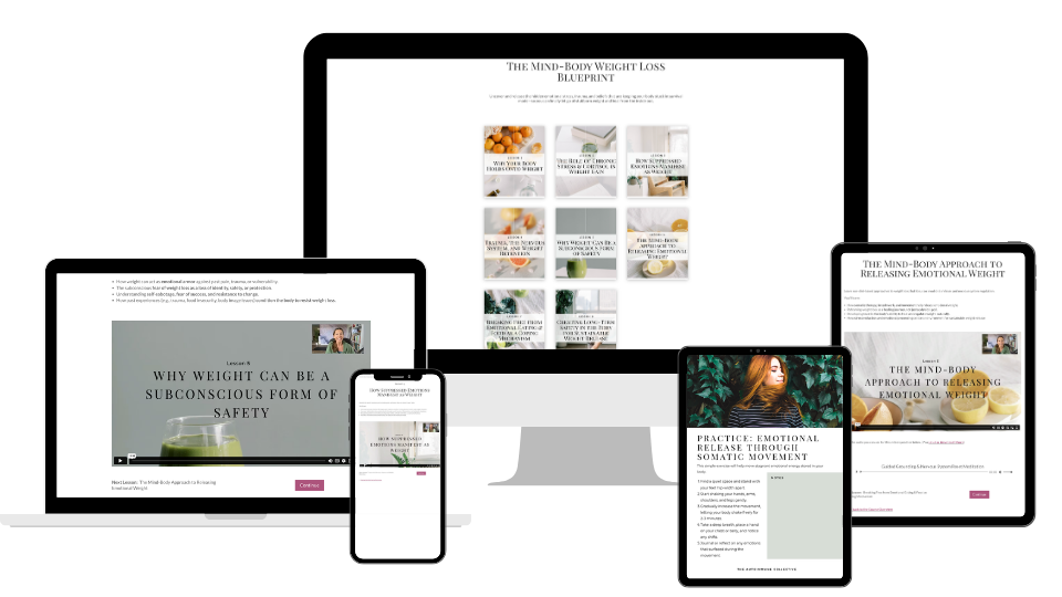 Discover the real reason your body is holding onto weight, and how to gently release it. The Blueprint combines trauma-informed insight with somatic tools to help you regulate your nervous system, release stored emotional weight, and create true safety in your body. This isn’t another diet—it’s deep healing from the inside out.