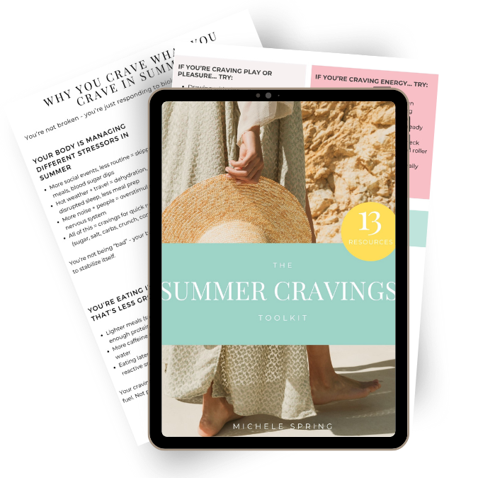 A simple, practical toolkit to help you understand and regulate seasonal cravings without willpower battles or restriction. Learn how stress, heat, schedule changes, and emotional patterns drive cravings – and how to respond in ways that support your body instead of fighting it.