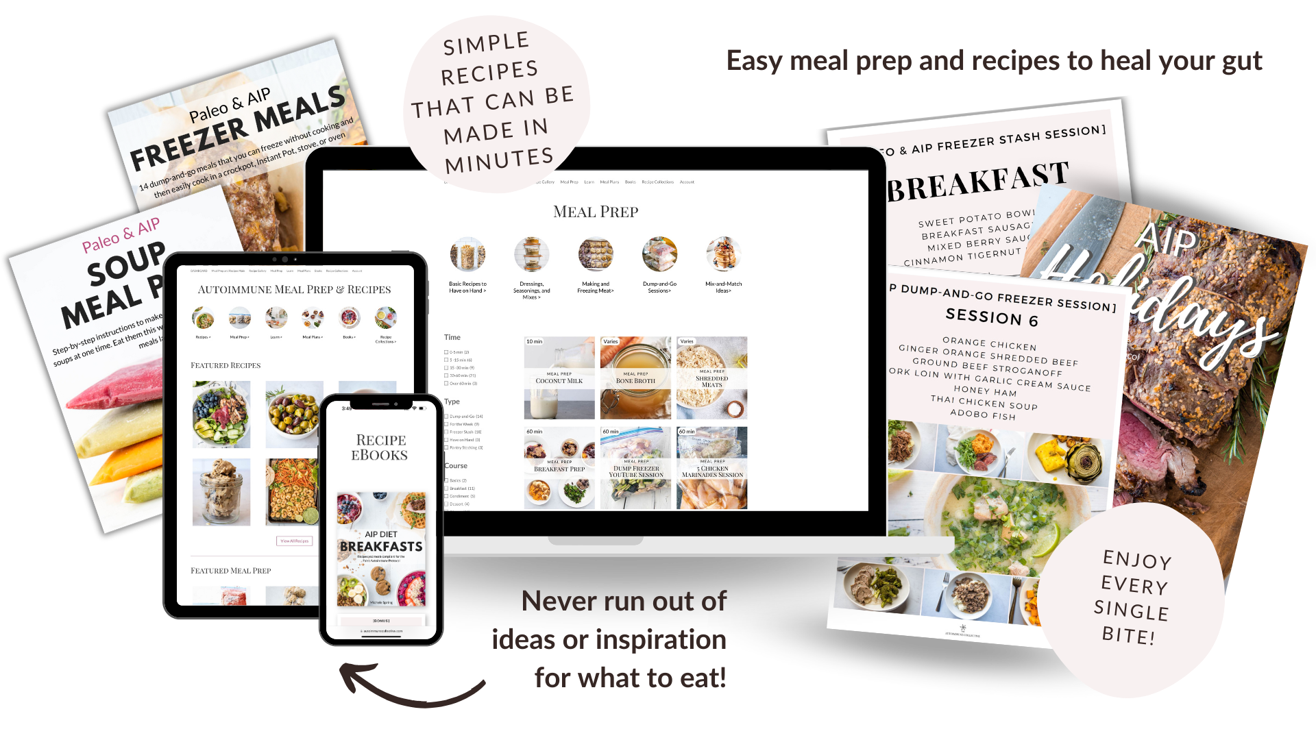 The healing food prep toolkit for women with autoimmune disease who want to feel better – without spending every night in the kitchen. (Includes the rest of the recipe ebooks and meal plans in this section)
